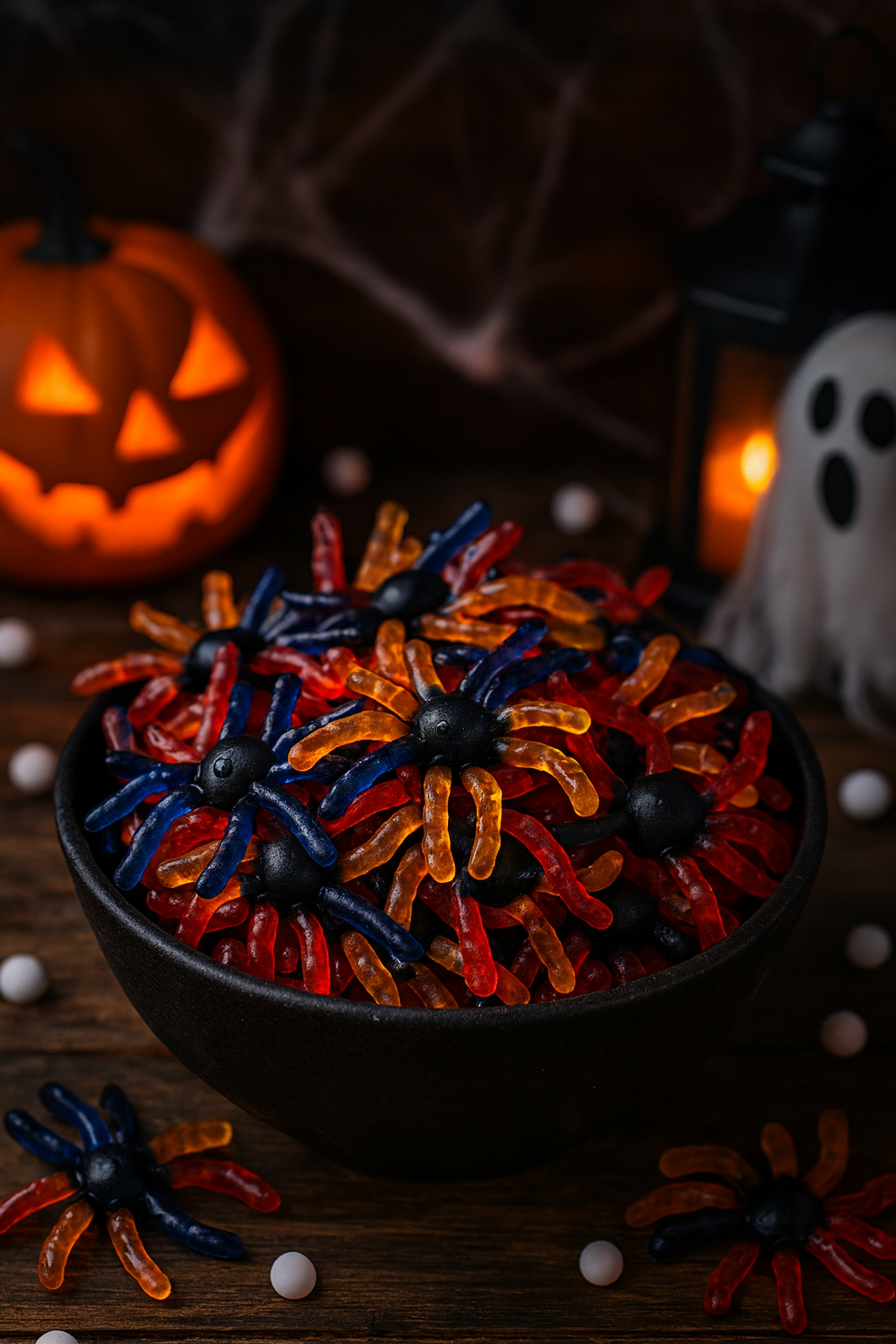 - Sirop de glucose, sucre, gélatine, acidifiants: acide citrique, acide lactique, arômes, colorant: carmin, curcumine, bleu brillant FCF, huile de palme, agents d'enrobage: cire d'abeille, blanc et jaune, cire de carnauba.