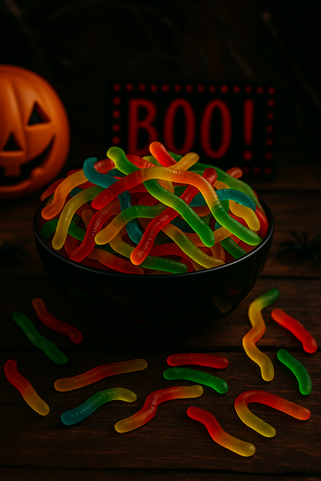 - Sirop de glucose, sucre, eau, gélatine de boeuf Halal, amidon modifié de pomme de terre, acidifiants : E330, E270, agent d'enrobage : huile végétale (palme), E901, E903, arômes, colorants : E100, E133, E100, E163, E160a, E129*.
